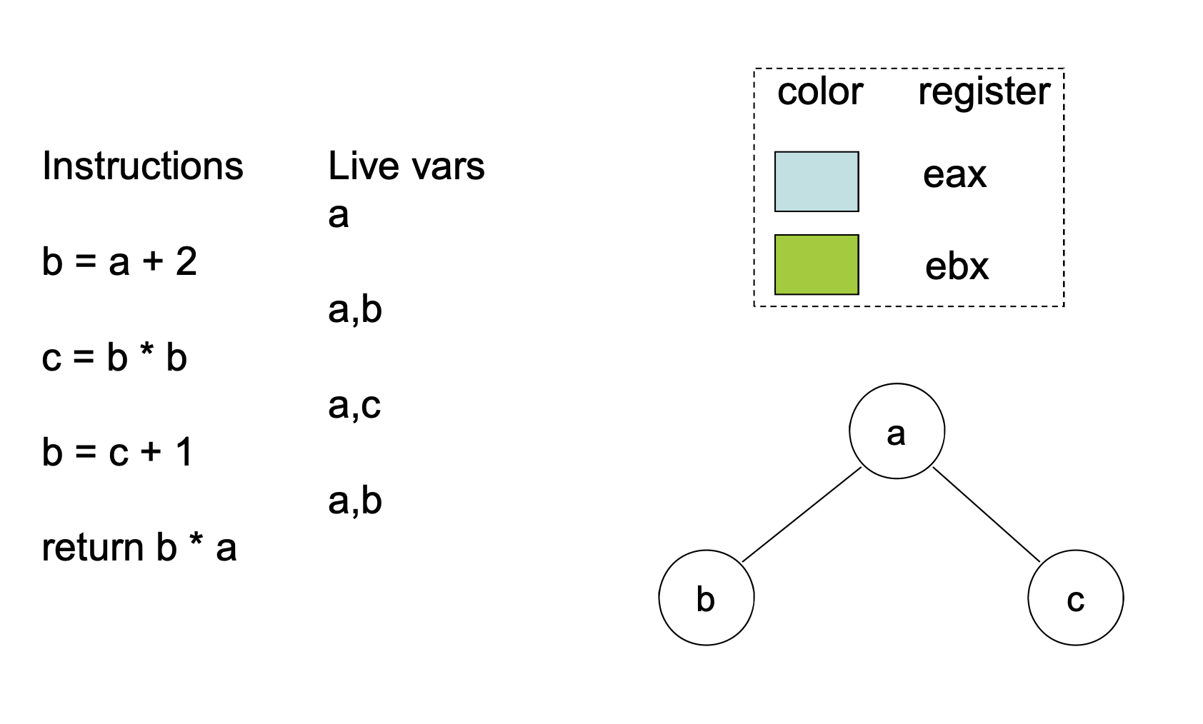 - two simultaneously live variables cannot be put into the same register